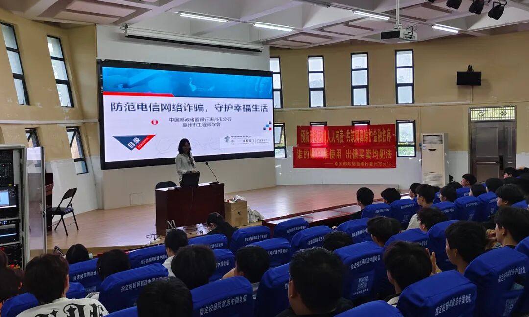 10月22日,惠州市工程师学会联合中国邮政集团有限公司惠州市城区分公司、中国邮政储蓄银行惠州分行,共同走进惠州城市职业学院,开展“金融知识进校园”主题宣讲活动,为该校师生送上一场内容翔实、实用性极强的金融安全“必修课”。